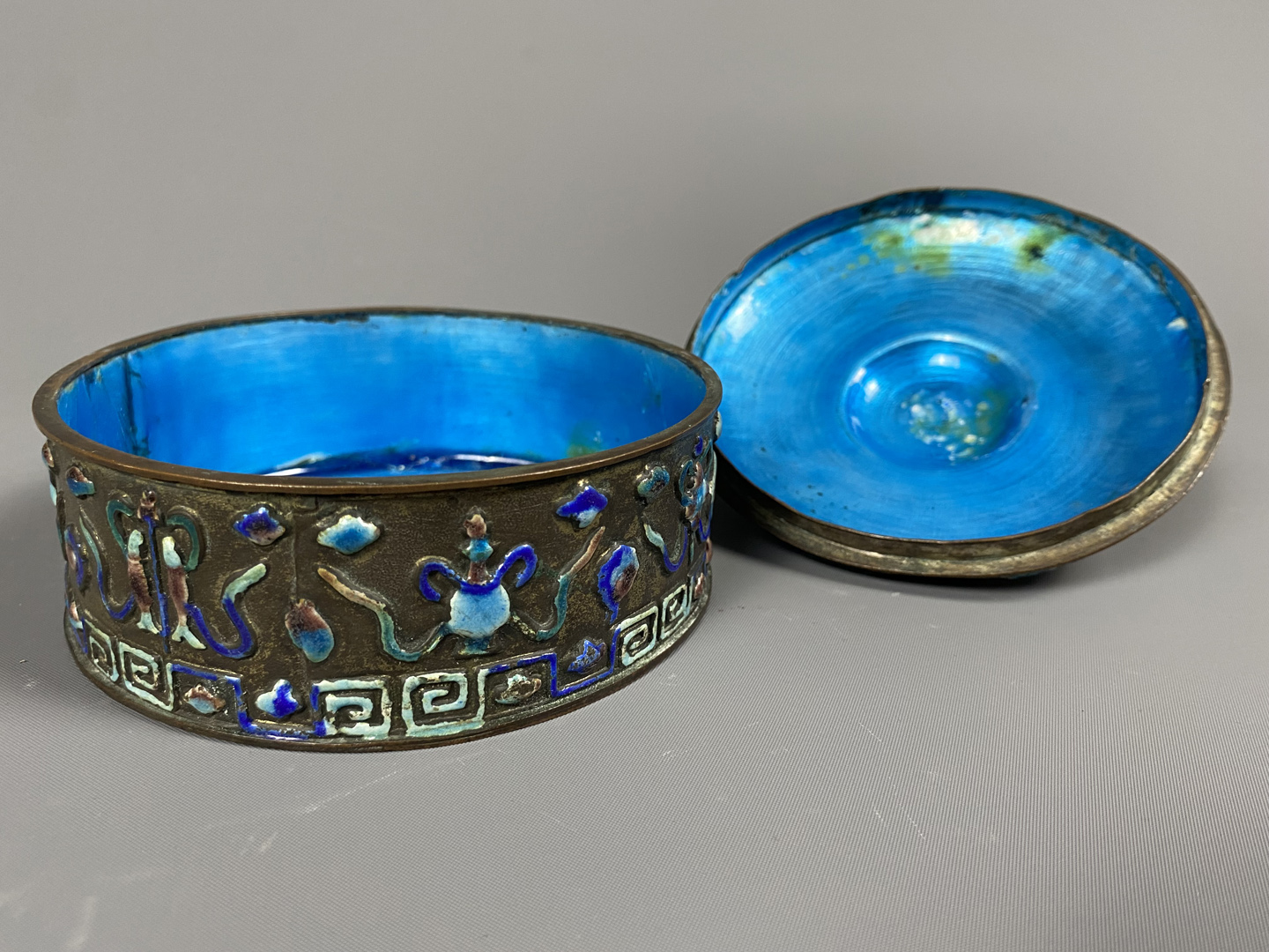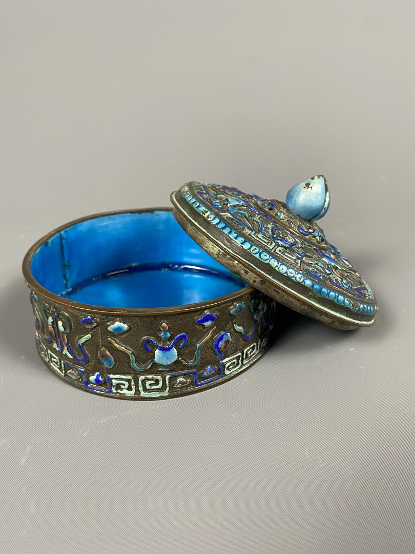 Boîte en émaux cloisonné chinoise circulaire en cuivre et émaux, seconde moitié du XXème.