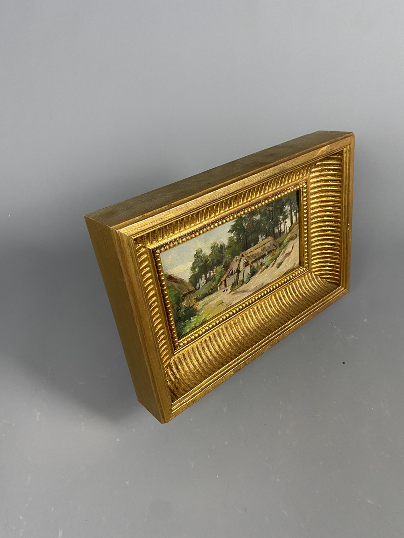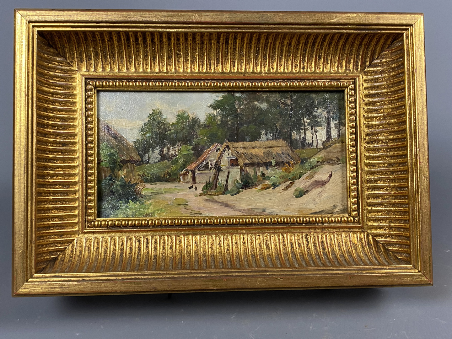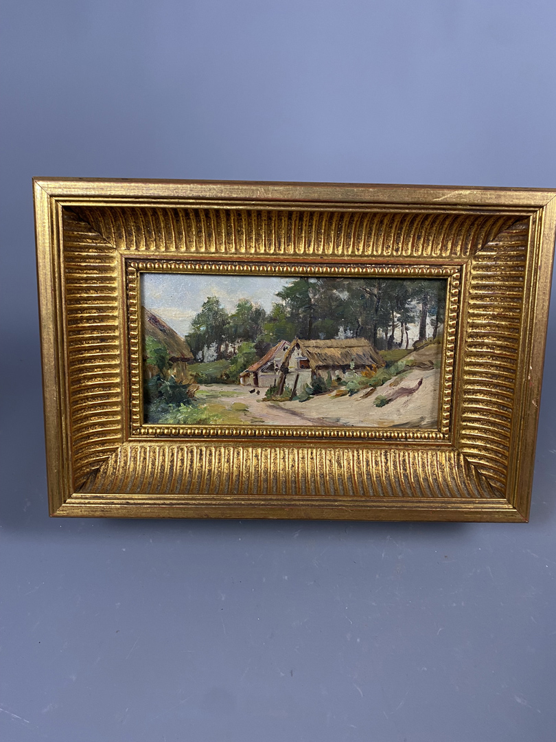 “Fermes landaises” Huile sur panneau fin XIXème / début XXème, dans le goût de Cabié ou Gueit.