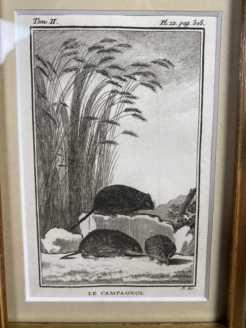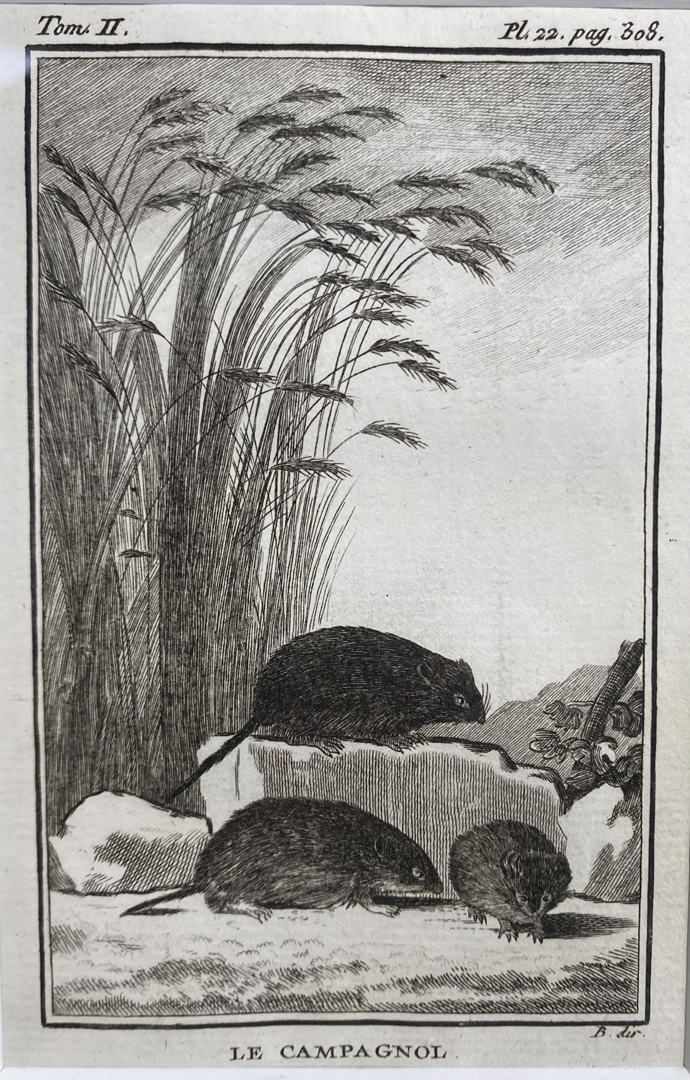 “Le Campagnol”. Ancienne gravure de planche de zoologie fin XVIIIème, par Bernard.