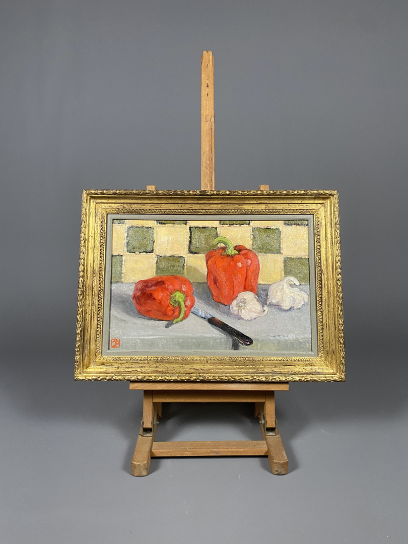 “Nature morte aux poivrons rouges”, Huile sur toile