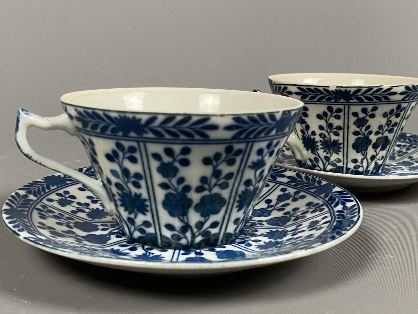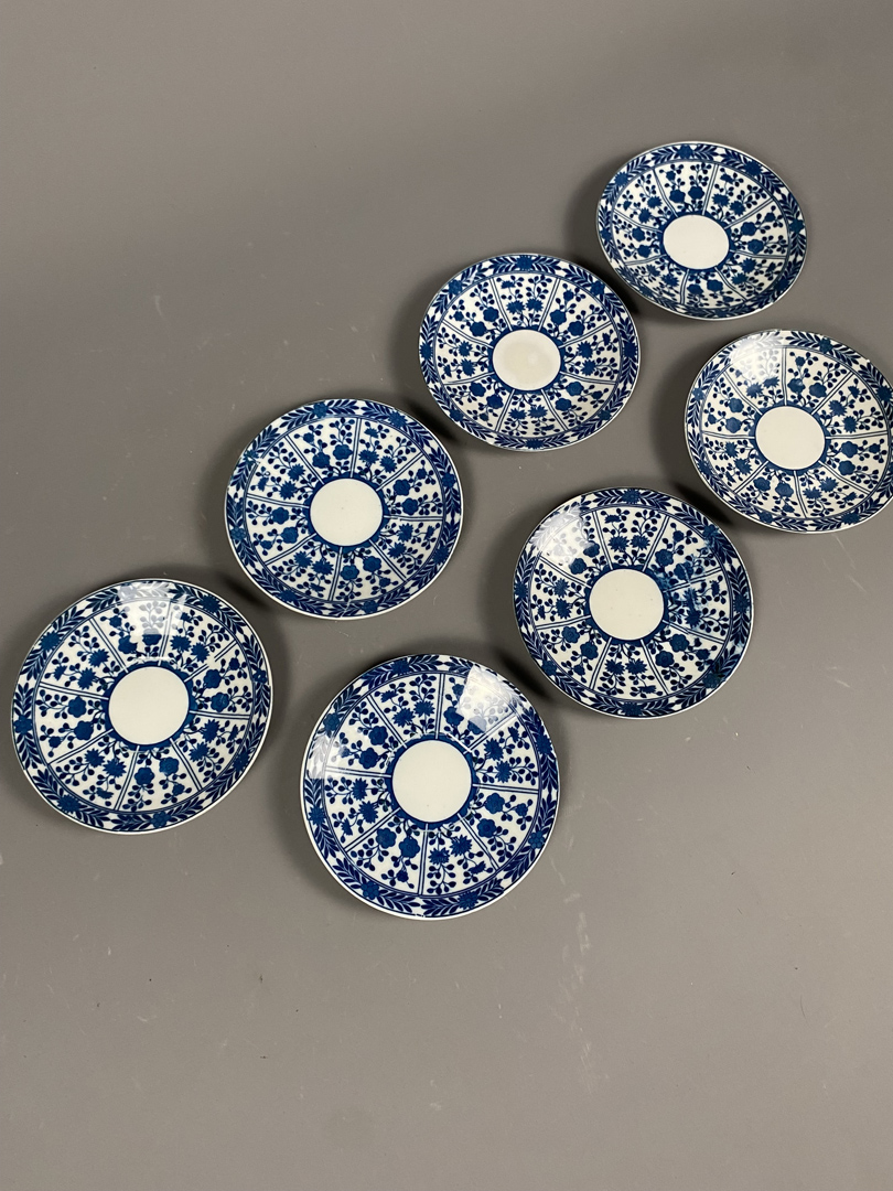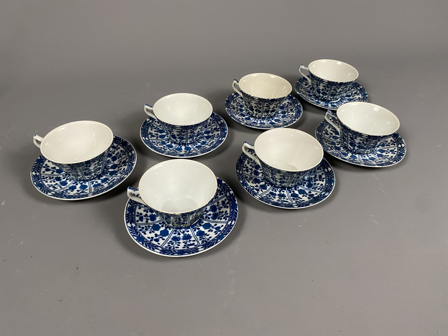 Partie de service à café en porcelaine du Japon, à décor floral blanc/bleu.