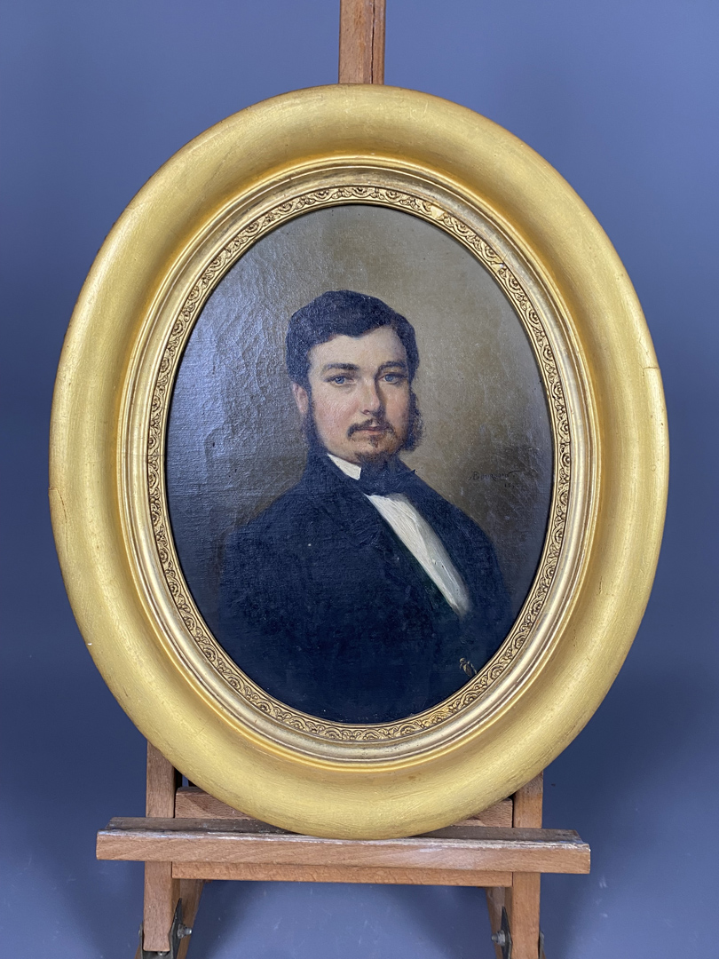 “Portrait de jeune homme”. Huile sur toile, école française XIXème.